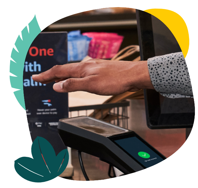 Amazon One lets you use just your palm to quickly and securely confirm who you are.